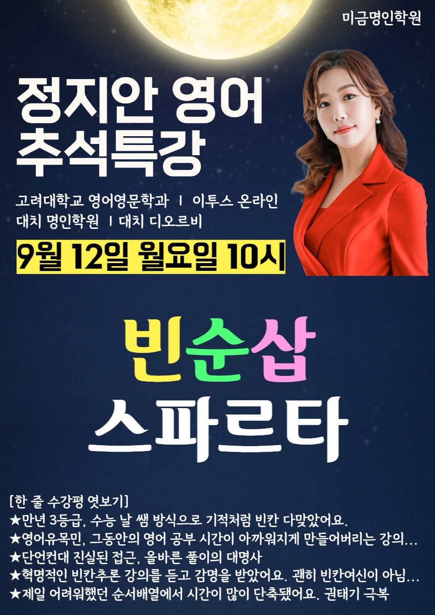 [1등급의 독해법, 이투스 정지안T 영어 추석특강 안내]